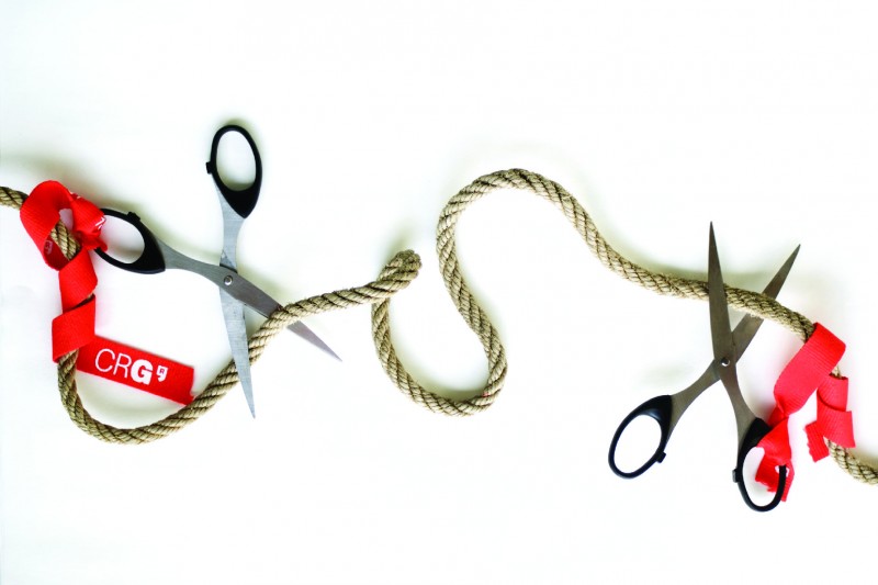 Der Löschvorgang bei CRISPR: Cas9 Proteine (Scheren) werden durch sgRNAS an ihr Ziel geführt (orange Bänder). Die Zielstelle wird ausgeschnitten. Die CRISPETa Software führt die «Scheren» schneller und leichter ans Ziel.