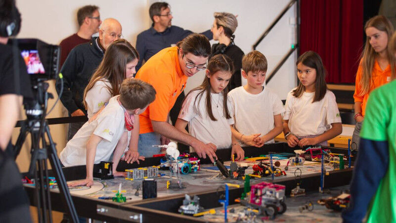 Kurz nach 9 Uhr starten die Wettkämpfe der Challenge League (9- bis 16-Jährige): Hier messen sich die Teams im Robot-Game und mit ihrem Forschungsprojekt. Beim Robot-Game zählt jeder Handgriff: In 2,5 Minuten müssen die Teams mit ihren selbstgebauten und -programmierten Lego-Robotern Mission um Mission meistern. Sie stellen Geschick und Köpfchen unter Beweis und zeigen, wie sie zusammenarbeiten. Ein besonderes Highlight des Wettbewerbs sind die Halbfinalund Finalspiele. Sie starten kurz nach 14.30 Uhr in der Aula der PH Graubünden. Ausserdem haben sich die Teams zum Saisonthema "unearthed" mit einer Forschungsfrage beschäftigt. Wie echte Wissenschaftlerinnen und Wissenschaftlern haben sie recherchiert, mit Expertinnen und Experten diskutiert und konkrete Lösungen erarbeitet. Ihr Forschungsprojekt sowie ihr Roboterdesign präsentieren die Teams am Wettbewerbstag vor einer Jury. Teams der Explore League mit Kindern im Alter von 6 bis 10 Jahren stellen die originellen Modelle ihrer Forschungsarbeit am Nachmittag im Erdgeschoss vor.