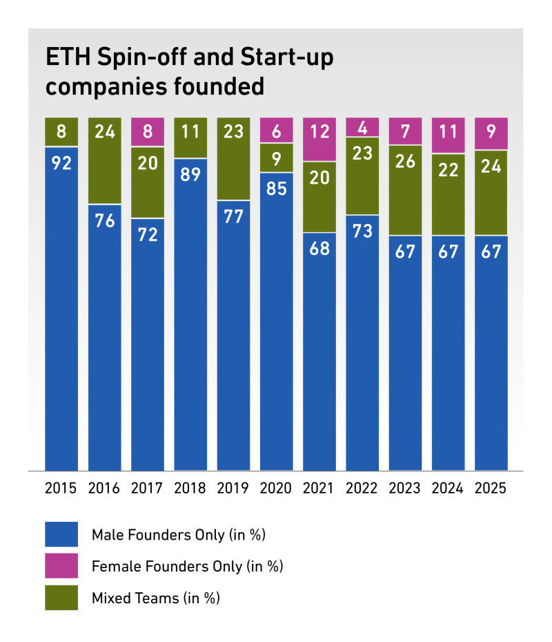 In 2025 ETH Zurich recognised the foundation of a total of 46 new ETH Ventures, compared to 37 ETH Spin-offs the previous year. The year also saw the entry into effect of the new Business Creation Regulations. New for 2025 is the "ETH Start-up" label, which complements the well-established "ETH Spin-off" label for companies whose business is based on research findings from ETH Zurich. The new ETH Start-up label is intended for ventures founded by ETH members with the aid of knowledge gained during studying or employment at ETH Zurich, but not reliant on ETH research findings. "ETH Start-ups are particularly often founded by students and graduates. ETH Zurich provides them with support through a wide range of funding programmes," explains Effy Vayena, the Vice President for Knowledge Transfer and Corporate Relations at ETH Zurich since the beginning of 2026. In fact, 9 of the 46 new ETH Ventures emerged from projects that originated at the ETH Student Project House.