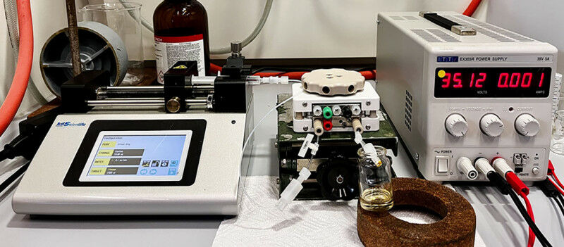Une équipe de l'Université de Genève a conçu un dispositif électrique permettant d'activer facilement et de manière plus 'verte' des réactions chimiques. Le dispositif se présente sous la forme d'un petit boîtier ( au centre ) au sein duquel le milieu réactionnel circule entre deux électrodes produisant le champ électrique. Stefan Matile Nouveaux médicaments, carburants plus durables, matériaux plastiques biodégradables: pour répondre aux besoins de notre société en constante évolution, les chimistes doivent mettre au point de nouvelles méthodes de synthèse, afin d'obtenir des produits et substances qui n'existent pas naturellement. Une équipe de l'Université de Genève , en collaboration avec l'Université de Cardiff, a découvert comment utiliser un champ électrique externe, à la manière d'un 'interrupteur', afin de contrôler et accélérer une réaction chimique. Ces travaux, à découvrir dans Science Advances , pourraient avoir un impact considérable sur la fabrication de nouvelles molécules en permettant des synthèses plus respectueuses de l'environnement, mais également un contrôle externe très simple d'une réaction chimique. En chimie, on appelle 'synthèse organique' le processus de création de composés chimiques organiques complexes à partir de réactifs plus simples. Par réactions successives, les chimistes assemblent des petites molécules afin d'aboutir à la formation des produits désirés.