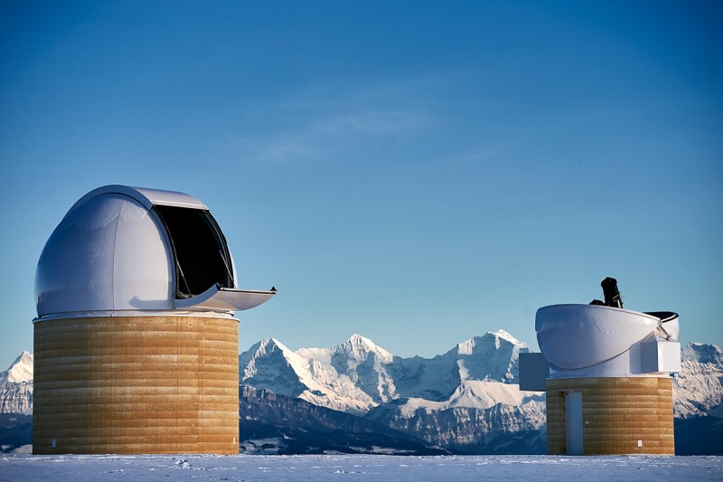 Die beiden neuen Kuppelbauten des Observatoriums Zimmerwald mit 5,3 Metern (links) und 4,5 Metern (rechts) Durchmesser.