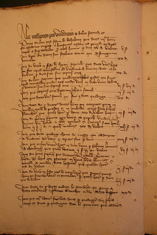 Abrechnung des Kellermeisters der Kirche Notre Dame in Beaune (Frankreich). Das Dokument gibt das Datum der Weinlese in den Rebbergen des Domkapitels nach Parzellen an. Aufgeführt sind die Lohnkosten pro Parzelle und Tag. Quelle: Archives Départementales de la Côte d’Or, 2918/126, Thomas Labbé.