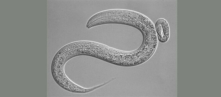 Le nématode C. elegans à deux stades de développement: la larve et l’embryon en développement.