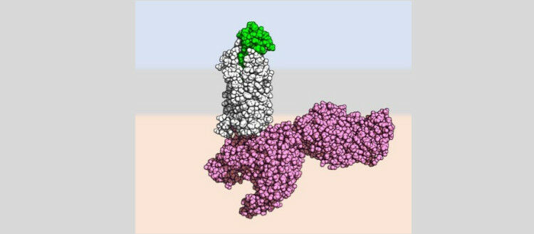 Image stylisée du récepteur en état actif (en blanc) lié par un chémokine modifié ( en vert ). En rose, une partie de la machinerie de signalisation de la cellule. ©UNIGE- Laboratoire Hartley - En étudiant la structure de récepteurs cellulaires et des molécules qui les activent, des scientifiques des universités de Genève et de Bâle décryptent le mécanisme précis d'activation des cellules immunitaires. Situés sur la membrane de nombreuses cellules immunitaires, les récepteurs aux chémokines jouent un rôle important dans leur activation défensive. Les chémokines sont de petites protéines qui se lient à ces récepteurs et contrôlent le mouvement et le comportement des globules blancs. Malgré l'importance de cette famille de récepteurs, leur mécanisme d'activation reste encore méconnu. Un consortium de recherche de l'Université de Genève (UNIGE), du Biozentrum de l'Université de Bâle et de l'Institut Paul Scherrer (PSI) de Villigen est parvenu à décrypter le mécanisme d'activation du récepteur CCR5, un membre de cette famille impliqué dans plusieurs maladies, notamment le VIH/SIDA, le cancer ou encore les complications respiratoires du COVID-19. Cette découverte représente une étape importante dans la compréhension de la biologie des récepteurs aux chémokines, fournissant de précieuses indications pour améliorer l'efficacité et le ciblage de nombreux médicaments dont le mode d'action vise ce mécanisme.