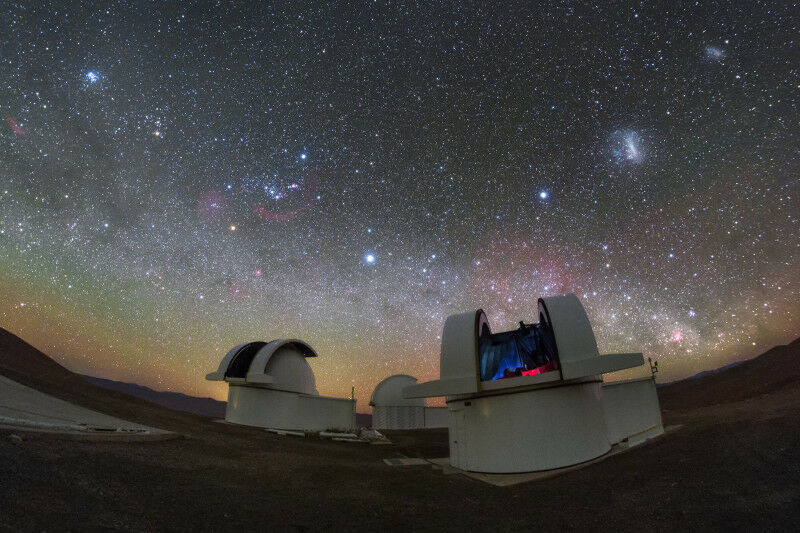 Die Teleskope des SPECULOOS Southern Observatory blicken in den atemberaubenden Nachthimmel über der Atacamawüste in Chile.
