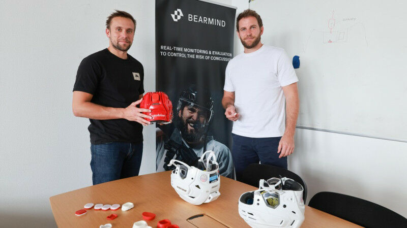 Tom Bertrand und Mathieu Falbriard, Mitbegründer von Bearmind, und ihr intelligenter Helm© 2023 Alain Herzog - Stöße auf den Kopf werden nicht immer in ihrem tatsächlichen Schweregrad wahrgenommen. Die intelligenten Helme von Bearmind, einem Spin-off der EPFL, bieten zahlreiche Hinweise, die eine genaue Überwachung der neurologischen Gesundheit der Spieler ermöglichen. Das Unternehmen hofft, den amerikanischen Markt schnell zu erobern. Im Eishockey sind Angriffe ein Teil des Spiels. Den Gegner mit der Schulter, der Hüfte oder dem Ellbogen gegen die Bande zu drücken, um den Puck zu erobern, trägt zur Action und Spannung bei, die von den Fans erwartet wird. Diese Aktionen bleiben jedoch nicht ohne Folgen. In der Saison 2016/2017 hat die Swiss Ice Hockey Federation nachgezählt: 104 Gehirnerschütterungen wurden in den beiden höchsten Ligen gezählt.