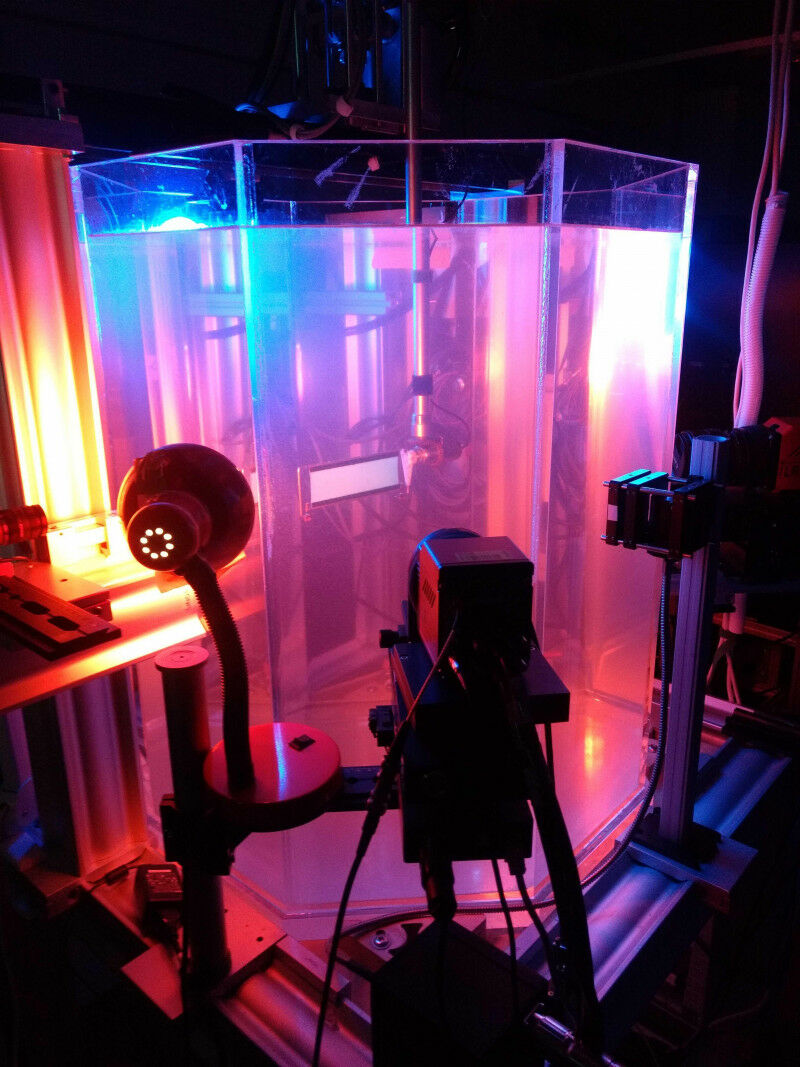Die Forscherinnen und Forscher montierten die flexible Membran auf einen starren Rahmen, dessen Ränder sich um ihre Achsen drehten. Um die Strömung um den Flügel herum besser sichtbar zu machen, tauchten sie ihre Vorrichtung in Wasser, das mit Spurenpartikeln aus Polystyrol vermischt war.