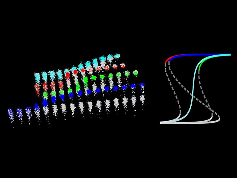 Zellen mit Proteinpaaren speichern langfristig Informationen (blau). Zellen mit nur einzelnen Proteinen speichern keine Informationen (rot und hellblau). (Bild: Universität Basel, Biozentrum)
