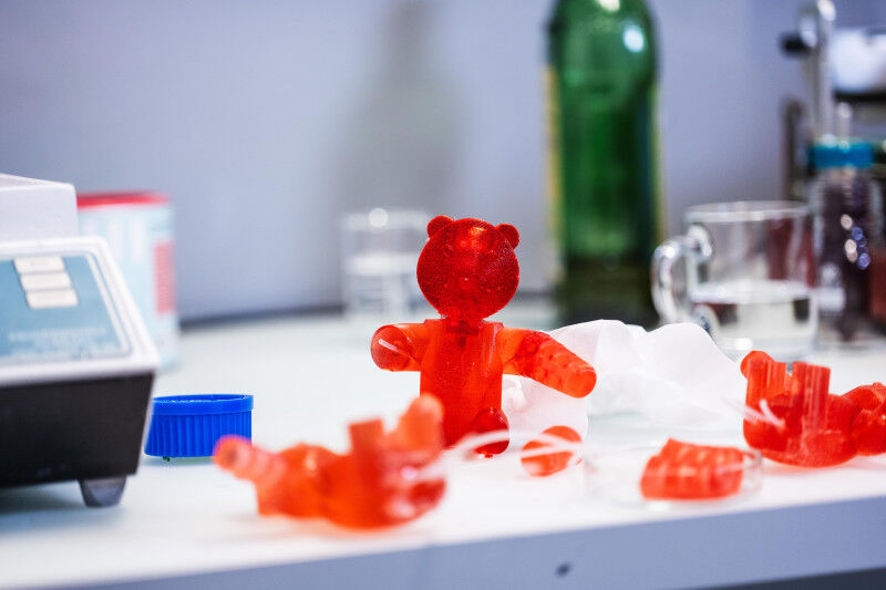 In cima alla RoboCake ci sono due personaggi, orsetti gommosi completamente commestibili, che sono stati progettati al LIS. "Sono fatti di gelatina, sciroppo e coloranti", spiega Bokeon Kwak, ricercatore dello stesso laboratorio. Queste figurine di zucchero sono anche animate "grazie a un sistema pneumatico interno: quando si soffia aria al loro interno, la testa e le braccia iniziano a muoversi".